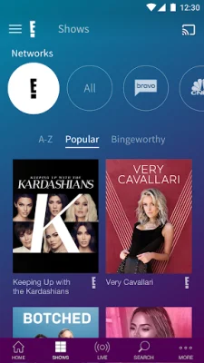 In addition to E! shows, the app also provides access to on-demand content from other NBCUniversal networks, such as NBC, Bravo, USA, SYFY, Oxygen, MSNBC, CNBC, Universal Kids, Telemundo, and Universo. Users can live stream their favorite networks within the app and browse a catalog of recent and throwback favorites. They can also filter shows by network and genre for easier browsing.