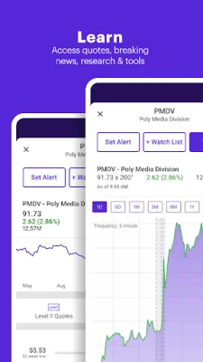 E*TRADE is an online investment platform that allows users to invest in US-listed stocks, ETFs, options, and mutual funds without paying any commission fees. It also offers professionally built portfolios to help users make informed investment decisions. With E*TRADE, users can access streaming quotes, charts, and portfolio information, as well as educational resources, research tools, and screeners to identify potential investment opportunities. They can also set alerts and create watchlists for their preferred investments. Additionally, users can stream live Bloomberg videos and chat with customer service representatives within the app.