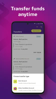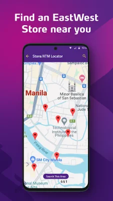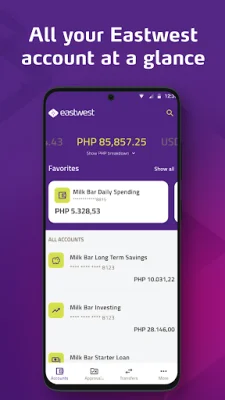 Through the app, you can easily view your account balances and transaction history. You also have the option to assign personalized nicknames to your deposit accounts for easier identification. Plus, you can easily move money between your own EastWest accounts, transfer funds to third-party EastWest accounts, and even send money to other banks via InstaPay and PESONet. You can also conveniently pay bills to over 200 billers.