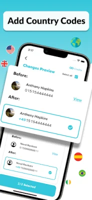 This application offers a variety of features to help manage your contacts. With this app, you can easily add country codes to your contacts, making them international and accessible no matter where you are. This is especially useful if you move to a different country and need to update your contacts. By adding country codes, you can ensure that apps like Facetime and Whatsapp can still detect and call your contacts.