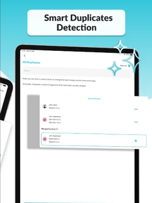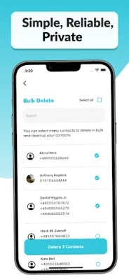 In addition to adding country codes, the app also allows you to merge duplicate contacts. This can be done by name or number, keeping your contact list organized and clutter-free. You can also bulk delete contacts, simplifying the process of removing old or unnecessary contacts from your list.