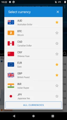 Adding a new currency to the app is also simple and convenient. Users can click the 'All currencies' button below their personal currency list to add a new currency. This makes it easy for users to customize their currency list and add any new currencies they may need. Overall, this currency converter app offers a user-friendly and efficient way to convert between currencies and keep track of their values.