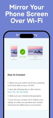 Using Easy Mirror is a breeze. Simply open the app and select the type of mirroring you want to use. If you want to cast your screen onto a specific device, you can easily do so by tapping on the "Screen casting" option. This allows you to share your screen with any device you choose. If you want to share your screen with multiple devices, you can use the "browser mirror" feature. This feature provides you with a local IP address that you can enter into any browser on another device, such as a laptop, PC, TV, tablet, or another phone. This allows your screen or gallery to be visible in real-time, without the need for any additional apps to be installed on the viewer's side.