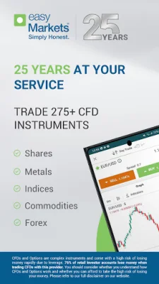 Over the years, our company has expanded its offerings to include more than just Forex trading. We now offer a variety of global indices, shares, metals, and commodities. Our easyMarkets App is designed to make trading easy and accessible for all types of traders. One of the unique features of our app is the optional Guaranteed Stop Loss with No Slippage. This means that you can set your desired stop loss rate without worrying about any slippage. We also offer Vanilla Options Hedging, which allows you to trade without margin requirements and protect against volatility. Our easyTrade feature is a simplified vanilla option with limited risk and unlimited return potential. For traders with advanced strategies, we offer Tighter Stop Loss Distances and Tight Fixed Spreads. Our app also includes Negative Balance Protection, ensuring that you never lose more than your initial investment. You can choose from multiple account currencies, including USD, JPY, GBP, EUR, and AUD. With over 275 instruments available, you can trade CFDs across a wide range of markets. Our app provides access to a variety of markets, including Forex, global indices, shares, metals, and commodities. You can trade major and minor currency pairs, top indices from the US, EU, UK, AU, Switzerland, and Asia, popular stocks from global markets, and metals like gold, silver, platinum, palladium, and copper. We also offer the ability to trade US, CAD, EU, UK, and Asian market indices, as well as commodities like oil, gas, sugar, cotton, and coffee. To get started, you can sign up for a fully featured, unlimited FREE demo account. This allows you to practice trading before depositing your own capital. Signing up is quick and easy, and you can access your account using FaceID, Facebook, Google, Apple, or email. Our support team is available 24/5 to assist you with any questions or concerns you may have. We are regulated by various authorities, including CySEC, ASIC, FSA, FSC, and FSCA, ensuring a safe and secure trading experience for our users. It's important to note that CFDs and Options are complex instruments and come with a high risk of losing money rapidly due to leverage. 76% of retail investor accounts lose money when trading CFDs with our provider. It's essential to understand how these instruments work and only trade with money you can afford to lose. Please refer to our full disclaimer on our website. With our premium add-on, you can activate Guaranteed Stop Loss with No Slippage for total risk control. However, please note that terms and conditions apply. Additionally, our easyTrade feature also has its own terms and conditions. Unfortunately, due to regulatory restrictions, our app is not available for trading in the US. But for traders in other countries, our easyMarkets App offers a convenient and user-friendly way to experience the thrill of trading.
