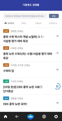 EBS 중학 강좌에서는 학년별, 년도별, 시리즈별로 강좌를 검색하고 맛보기를 할 수 있으며, 강좌 수강 전에는 강의의 5분 미리보기를 제공합니다. 또한 고화질과 일반화질의 동영상 강의를 스트리밍으로 수강할 수 있으며, 네트워크가 없어도 다운로드한 파일을 재생할 수 있습니다. 배속 재생과 자막 기능도 지원됩니다.