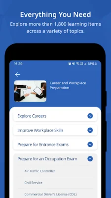 EBSCOlearning Unplugged makes learning effortless by providing seamless access to all content. You no longer have to choose individual resources, as the app offers a variety of content categories to explore. These categories include adult learners, career and workplace preparation, college resources, college students, high school equivalency test preparation, and Spanish language resources. Each category offers specific resources to help you achieve your learning goals.