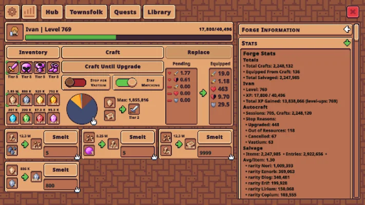 The game is developed by an independent studio that is dedicated to creating innovative idle experiences. Player feedback is highly valued and helps shape the game's roadmap. The team reads every review and updates the game frequently to provide the best possible experience. With future-proofing in mind, the Forge now stores per-stat quality percentiles, ensuring that great rolls remain great even after balance updates.