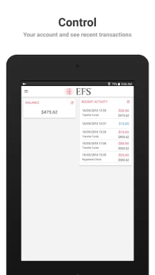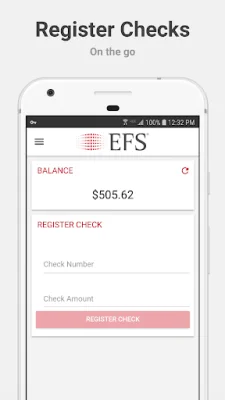 In addition to managing their EFS account, users can also register checks through the app. This feature allows users to easily deposit checks into their EFS account by simply taking a photo of the check and submitting it through the app. This eliminates the need to physically go to a bank or ATM to deposit a check, making it a convenient and time-saving feature.
