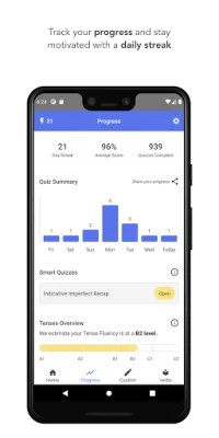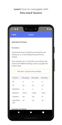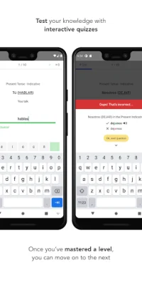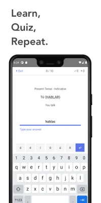 Unlike other Spanish flashcard or verb trainer apps, our approach is "learn, quiz, repeat." We teach you the verbs, quiz you, and then reinforce the content when you need it most. Studies have shown that quizzing helps with concentration, identifying knowledge gaps, and long-term retention (Roediger & Karpicke, 2006). Our Smart Quizzes are designed to help you drill verbs into your memory effectively.