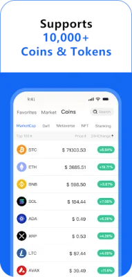 ELLIPAL Wallet is a versatile and user-friendly crypto wallet that supports 46 different blockchains and over 10,000 tokens. It allows users to easily and securely hold, trade, earn, and manage their cryptocurrencies and NFTs all in one place. With ELLIPAL Wallet, you can receive, buy, swap, store, stake, and send your cryptos with just a few clicks. You can also receive, view, buy, send, and sell your NFTs directly from the wallet.