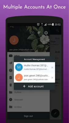 The app offers a variety of key features to enhance your email experience. It fully supports Microsoft Email Services, including Hotmail, Outlook, and other services like Windows Live Mail and MSN Mail. You can easily log in to your accounts in a fast, easy, and secure manner.