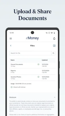 The application offers an all-in-one account view, allowing users to easily connect and view all of their financial accounts in one place. This provides a comprehensive overview of their financial situation, making it easier to manage and track their finances. Users can also track their spending, investments, and asset allocation through easy-to-understand visuals and insights. This helps them stay on top of their financial health and make informed decisions about their money. One of the key features of the application is personalized goal setting. Users can identify their financial goals and track their progress, making adjustments as needed to see how changes can impact their financial future. This feature allows for a more tailored and proactive approach to financial planning. The application also offers a secure document vault, where users can upload and store important documents. These documents can be shared with their advisor directly through the portal, providing a convenient and secure way to communicate and collaborate. In addition, the application simplifies communication between users and their advisor. This allows for meaningful planning conversations to take place within the secure portal, making it easier for users to stay engaged and involved in their financial journey. By using this application, users can save time and stay organized by automating financial tracking and accessing everything in one place. This not only streamlines the management of their financial life, but also provides complete control and security with secure aggregation and document sharing. Overall, the application offers a range of benefits, including enhanced engagement, complete control and security, and the ability to save time and stay organized. It also allows users to explore different financial topics and gain valuable insights, separate from their financial plan. With its user-friendly features and personalized approach, this application is a valuable tool for anyone looking to take control of their finances.