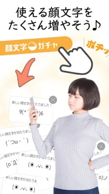 The main feature of GACHA is the capsule toy system, which is a popular concept in Japan where users can collect small toys or trinkets from vending machines. In this case, the "toys" are new and unique emoticons that users can collect and use in their digital communication. This adds a fun and playful element to messaging and social media, allowing users to express themselves in a more creative and personalized way.