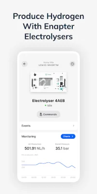 All Enapter devices, including Electrolysers, Dryers, and Water Tanks, are seamlessly integrated into the app. You can easily connect them to the Enapter Cloud using a QR code and an interactive quick-start guide. This enables you to access features such as chart views, push notifications, and remote start/stop capabilities.
