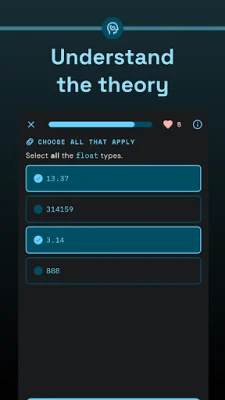 Encode is an application that allows users to learn in-demand programming languages such as Python, JavaScript, HTML & CSS, and SQL through comprehensive courses. It also offers mini-courses for basics of Java, Swift, R, and the Command Line. The app provides hands-on learning experiences, allowing users to write and run real code directly within its built-in editor. This helps users gain practical experience through interactive coding challenges, quizzes, and exercises designed to help them retain what they learn.