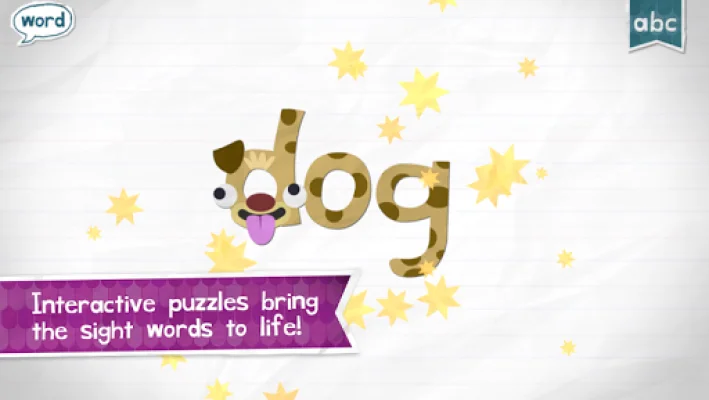 The app uses delightful animations to reinforce sight recognition of words. Each word is presented as an interactive word puzzle, with letters that come alive to capture the child's attention. This helps children to visually recognize and remember the words. The app also includes sentence puzzles, where the words are used in context and become what they describe. For example, the word "dog" will be shown as a barking dog, and the word "up" will reach for the sky. This feature helps children understand the meaning and usage of the words they are learning.