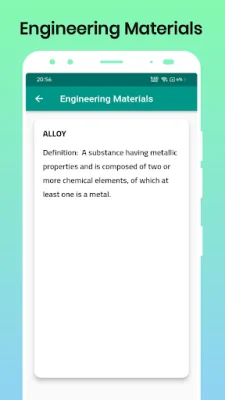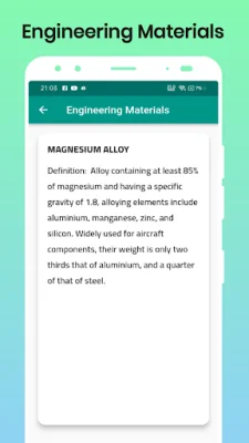 This application is designed to provide a comprehensive and organized solution for engineering materials. It offers two main features: an alphabetical listing and a search tool. These features make it easy for users to quickly find and review information on various materials used in engineering.