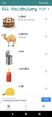One of the unique features of our app is the ability to listen to the pronunciation of each vocabulary word by simply clicking on the corresponding image. This not only helps children learn the correct pronunciation but also improves their listening skills. Additionally, users can also start a slide show by clicking the play button, allowing for a more interactive learning experience.