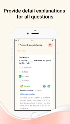 In addition to practice questions, English Grammar by levels also offers in-depth explanations of grammar rules with detailed examples. This thorough approach not only teaches users the "how" of grammar, but also the "why" behind each rule, providing a deeper understanding of the language.