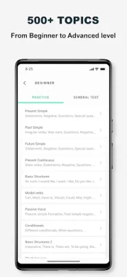 The app's key features include practice exercises, test mode, topic-based learning, customized learning experience, progress tracking, and offline access. The practice exercises are interactive and tailored to specific grammar topics, providing immediate feedback and explanations to enhance understanding. The test mode offers timed quizzes and comprehensive exams to simulate real-life situations and evaluate grammar skills under pressure. The topic-based learning feature presents structured lessons with clear explanations, examples, and usage guidelines to strengthen grammar skills step by step.