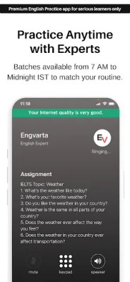 EngVarta is an app designed for individuals who want to improve their spoken English skills through personalized practice with experts. It offers 1-on-1 live phone calls with English experts who will guide, correct, and motivate you to reach your goals. This app is suitable for job seekers, IELTS/TOEFL candidates, professionals, and English learners of all levels.