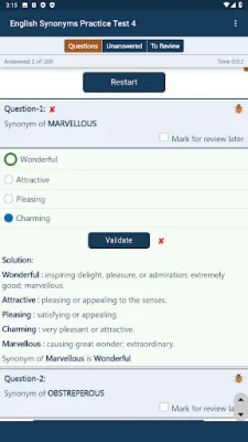 One of the main features of the app is its antonyms and synonyms online tests. These tests provide users with a variety of words and ask them to choose the correct antonym or synonym. This helps users expand their vocabulary and improve their understanding of word meanings.