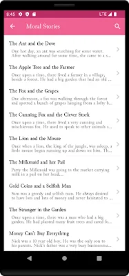 This app is designed to help users improve their vocabulary and speaking skills in English through a collection of moral stories. These stories are meant to not only entertain, but also educate and enhance language abilities. With a large collection of stories available, users have a variety of options to choose from and can easily find something that interests them.