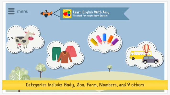 Learn English With Amy is an educational app designed for children between the ages of 2 and 7. It offers 13 different categories, such as farm, numbers, transportation, and body, to help children learn and play while also testing their listening and reading skills. The app features challenging games, including a slideshow, concentration game, puzzle, and quiz, all with high-quality graphics and a friendly female voiceover. It aims to teach children new words, improve their pronunciation and spelling, and expand their vocabulary.