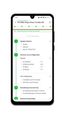 Once the Enphase System is fully configured, users can view and email a system status summary report directly from the app. This report serves as confirmation of a successful installation and can be shared with clients or kept for record-keeping purposes. The app also allows for customization of the report, making it easy to add personal touches or include specific information.