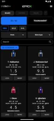 EPICK™ is a revolutionary fantasy sports application that offers two exciting game modes for users to choose from. In Tournament Mode, players can enter multi-user contests and compete to climb the leaderboard. The higher they finish, the more they can win. In 50/50 Mode, users can face off in one-on-one matchups and aim to outscore their opponent for a chance to take home the prize.