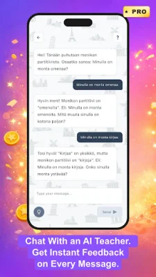 For those looking to practice speaking Finnish, Erla offers the option to speak with an AI teacher in a safe and judgment-free space. You can choose from 12 real-life topics and receive a detailed report after each session, including your score, grammar corrections, and vocabulary in context.