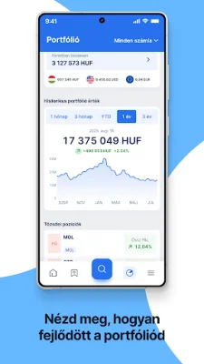 AZ Erste Market GO egy olyan alkalmazás, amely lehetővé teszi számodra, hogy egyszerűen befektethess vagy kereskedhess a tőzsdén. Az alkalmazásban több ezer termék közül választhatsz, legyen szó részvényekről, ETF-ekről vagy certifikátokról. A célodnak megfelelő befektetési portfóliót tervezhetsz, és egy helyen áttekintheted tőzsdei és tőzsdén kívüli befektetéseidet, valamint azok eredményességét is.