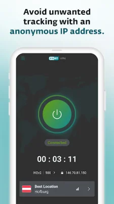 ESET VPN is a user-friendly application that allows you to establish a secure connection while using both public and private networks. By connecting to a location within the app, your device will be assigned a new IP address, ensuring that your online traffic is encrypted and protected in real time. This prevents unwanted tracking and data theft, providing you with the safety and anonymity of an anonymous IP address.