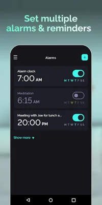 Essential Shake Alarm Clock is a must-have application for anyone looking to start their day on the right foot. With its beautiful design and user-friendly interface, managing your alarms has never been easier or more enjoyable. The elegant design adds a touch of sophistication to your daily routine, making setting and managing alarms a delightful experience. One of the key features of Essential Shake Alarm Clock is the ability to set multiple alarms and reminders. This ensures that you never miss an important event or deadline. With the option to set multiple alarms, you can efficiently organize your schedule and stay on top of your commitments. Say goodbye to the stress of forgetting important tasks and hello to a more organized and productive day. Tired of the same old snooze button? Essential Shake Alarm Clock offers a unique solution with its shake-to-stop feature. Instead of hitting the snooze button and risking oversleeping, simply shake your phone to turn off the alarm. This feature ensures that you are fully awake and alert to start your day, making your mornings more lively and refreshing. Don't wait any longer to transform your mornings into a more enjoyable experience. Download Essential Shake Alarm Clock now on Google Play and start your day off right. With its beautiful design, multiple alarm and reminder options, and unique shake-to-stop feature, this application is a game-changer for anyone looking to improve their morning routine. Say goodbye to boring and stressful mornings and hello to a more organized and refreshing start to your day.