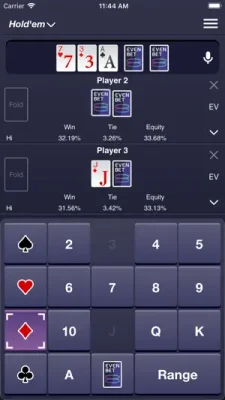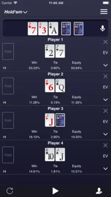 The app also offers the option to customize the number of opponents, making it easier for players to adjust their strategies accordingly. Furthermore, users can easily switch between different poker types, making it a versatile tool for players who enjoy different variations of the game. The app also keeps track of hands history, allowing players to review their gameplay and make improvements for future games.
