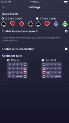 The Poker Calculator offers a range of useful tools to enhance the user's gaming experience. One of its key features is the quick input of cards, which enables players to instantly calculate their chances of winning at any stage of the game, from pre-flop to the river. Additionally, the app also supports voice input, allowing players to simply state their cards, such as "queen of spades and ten of hearts," for a quick calculation.