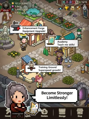 The facilities in town are not just for show, as they play a vital role in raising and training Hunters. The Bounty Hut gives Hunters quests to hunt monsters, providing extra experience and items. The Academy allows players to teach their Hunters new skills and secret techniques, while the Enhancement Forge allows for the modification of Hunter's equipment. The Training Ground is where players can quickly level up their Hunters and even reincarnate them to become even stronger. And for endless growth, there is the Sanctuary of Resurrection where Hunters can learn special traits to make them even more powerful.