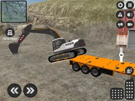 This application allows you to experience the thrill of transporting heavy equipment through challenging terrain. You will be in control of a truck and excavator transporter trailer, navigating through mountainous and forested roads. The main objective is to transport the excavator to the designated business area on the map.