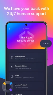 Exodus sets itself apart with its world-class design, created by experts with experience at top companies like Apple and Microsoft. But it goes beyond just the basics - with 24/7 support, you can rest assured that the Exodus team is always available to help, day or night. And for more advanced users, Exodus offers features like real-time price charts, time-segmented balance display, and price alerts.