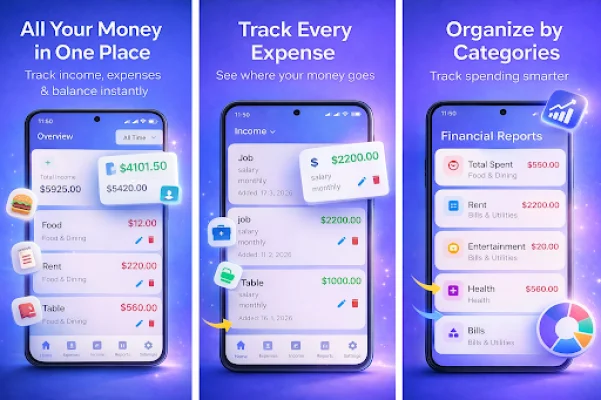 This application is designed to help users stay organized, reduce unnecessary spending, and build better money habits. It is a simple and powerful expense tracker that allows users to track their daily expenses and income instantly. With a budget planner, users can control their spending and categorize expenses for clear insights. The app also provides monthly and yearly financial reports, a clean and easy-to-use interface, and the ability to work offline without an internet connection. Additionally, the expense tracking is secure and private, ensuring the user's financial information remains confidential.