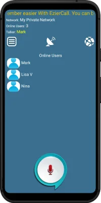 This application allows you to easily communicate with others through voice messages without having to take your phone out of your pocket. It's convenient because you can use it even when the app is closed and your phone screen is off. You don't need to create an account, remember a username, or set a password. Additionally, all of your conversations and data are not stored on the app's servers or your devices, ensuring your privacy and security.