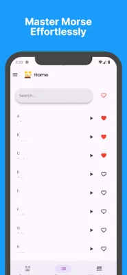 In addition to its translation function, ezMorse also offers a comprehensive alphabet list. This allows you to learn the Morse Code for each letter, with the option to mark your favorites for quick access. This feature is especially useful for those who are new to Morse Code and want to familiarize themselves with the different symbols and sounds.