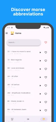Another useful feature of ezMorse is its collection of common abbreviations in Morse Code. These abbreviations are commonly used in Morse Code communication and can be accessed and played within the app. You also have the option to save your favorite abbreviations for convenience, making it easier to use them in your messages.