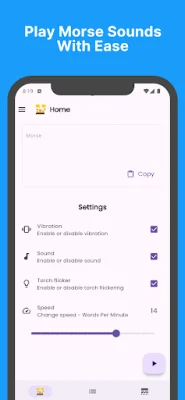 One of the key features of ezMorse is its instant translation capability. With just a few taps, you can effortlessly convert any text into Morse Code and decode Morse back to text. This makes it a convenient tool for sending and receiving messages in Morse Code, without having to manually translate each letter.