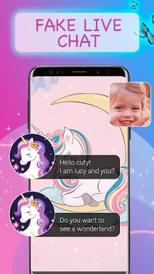 This application is a free video call app that allows you to personalize a fake unicorn character call. This means that you can create a fake call where it appears as though a unicorn is talking to you. It's a great way to prank your friends and kids, especially if you enjoy playing pranks. The app offers a variety of unicorn characters to choose from, making the prank even more fun and personalized.
