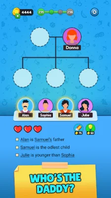 Family Tree is a unique and engaging logic puzzle game that offers a fun and challenging way to train your brain, improve your focus, and enhance your memory. With the help of clues, players can unlock intricate branches of different families and build big towns while immersing themselves in an intriguing story. The game's logic puzzles and challenges provide mental stimulation, promoting critical thinking, problem-solving, and logic skills, which are essential for cognitive health. By combining the excitement of solving puzzles, building towns, and uncovering family stories, Family Tree offers a one-of-a-kind gaming experience that will test your IQ, logic, and word-solving abilities. As you embark on a captivating journey through generations of a family tree, you will solve word puzzles that reveal hidden tales and secrets of ancestors. Each level presents a new and challenging riddle, making every moment an opportunity to learn and think critically. In addition to word puzzles, players can also immerse themselves in the world of nonogram puzzles, where clues guide their path to uncover stunning family portraits and historical artifacts. With each clue collected, the enigmatic past of the family tree is slowly revealed, providing a unique and enriching experience for the entire family. As players progress through the game's challenging levels, their IQ will soar to new heights. Family Tree is designed to entertain and enrich the mind, making it a perfect game for those looking to have fun while also learning and improving their cognitive skills. So, are you ready to embark on a word puzzle adventure that will challenge your intellect, sharpen your logic, and reveal the captivating story of a family's past? Download Family Tree now and get ready to think, learn, and solve your way through the generations! It's not just a game; it's an educational journey that brings family history to life, one puzzle at a time.