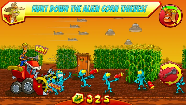 Help Pops, Joe and Otis in their mission to save their farm from the corn-grubbing monsters from outer space in this exciting and action-packed game! The game is free to play and features a unique combination of rednecks and aliens in a runner-style game. With powerful upgrades for your weapons and tons of tuning parts for your harvester, you'll have everything you need to defeat the invading monsters.