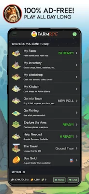 Farm RPG is a fun and engaging farming role playing game that can also be played as a massively multiplayer online game. The game allows players to start their own farm, plant crops, fish, craft, and explore a vast world filled with townsfolk and other players to interact with and trade. One of the main features of Farm RPG is farming, where players can plant and grow various crops, expand their farm with different buildings, and raise animals such as chickens, cows, and pigs. These farm buildings not only aid in farming, but also in crafting, fishing, and exploring. Players can even start their own vineyard and wine cellar for added variety. One unique aspect of Farm RPG is that it is completely ad-free, allowing players to play without any interruptions. The game also offers a variety of features such as fishing, cooking, and making money through various investments and farm growth strategies. The game is constantly updated with new content and events, keeping players engaged and entertained. The community of players is also known for being friendly and helpful, making the game a non-competitive and enjoyable experience for all. Crafting is another important aspect of Farm RPG, with hundreds of items to craft and master. The game also offers auto-crafting to make mastering certain items easier, and crafting and mastering items is a great way to earn in-game currency. Farm RPG is also free to play and registration is easy, with no data being collected or sold. Players can even choose to include their email for password recovery, but it is completely optional. Exploring is another exciting feature of Farm RPG, with multiple zones to explore and rare items and materials to find. Players can also use items such as Arnold Palmers and Apple Ciders to make exploring easier, and the townsfolk can also help with exploring effectiveness. Quests are also available in Farm RPG, with townsfolk offering rewards for completing daily personal help requests and special event requests. The game is easy to pick up and hard to put down, making it a great choice for players looking for a chill and relaxed farming game with RPG elements.