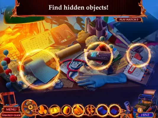 If you ever get stuck while finding things or playing hidden object games, don't worry! You can consult the helpful Strategy Guide for tips and hints to help you progress through the game.