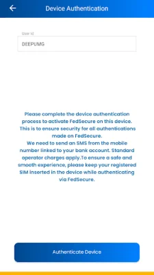 Once registered for mobile-based 2FA, the user will receive a link to download the FedSecure app, along with their unique user ID and an activation code. After downloading the app, the user will enter the provided information from Federal Bank to activate OTP authentication for their account. They will also choose a personal PIN that will be used to generate the OTP for their account.